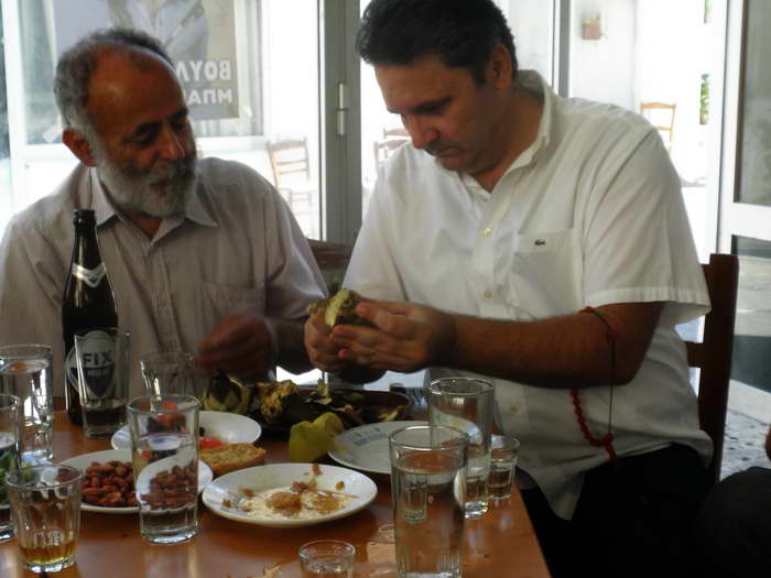 Συγκεκριμένο μέλος της παρέας  έχει τάξει  να φέρνει ντόπιες φρέσκιες αγκινάρες   σαν μεζέ της  ρακής που θα καθαρίζονται και θα καταναλώνονται επιτόπου .