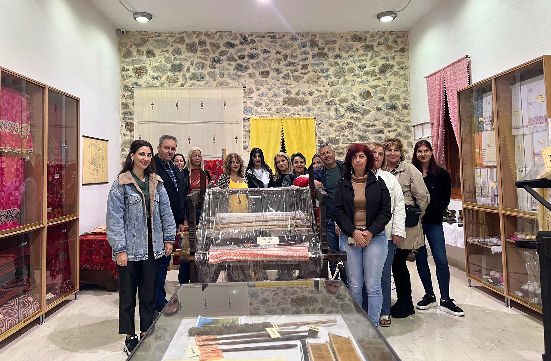 Η επίσκεψη συνεχίστηκε στο Μουσείο Υφαντικής, έναν χώρο που δημιουργήθηκε και λειτουργεί με φροντίδα και μεράκι, προβάλλοντας την παραδοσιακή τέχνη, την υπομονή και τη δημιουργικότητα των Μελαμπιανών γυναικών. Ανάμεσα σε αργαλειούς, υφαντά και αντικείμενα καθημερινής ζωής, οι μαθητές γνώρισαν τον πλούτο της λαϊκής παράδοσης και τον μόχθο που κρύβει κάθε χειροποίητο δημιούργημα.
