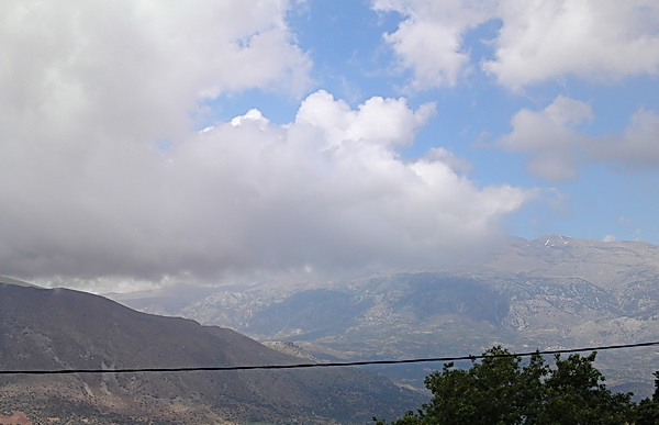 Σήμερα το απόγευμα Κυριακή 12 Ιουνίου 2011, ξαφνικά οι κατσιφάρες σκέπασαν το χωριό σαν να τανε Δεκέμβρης. Περνούν ξυστά από την κορφή της Βουβάλας, μαυρίζει προς τα δυτικά ,πετά που και ψιχάλα, ενώ ο Ψηλορείτης ίσα που διακρίνεται από τα σύννεφα ενώ παράλληλα μυρίζει έντονα πρωτοβρόχι.