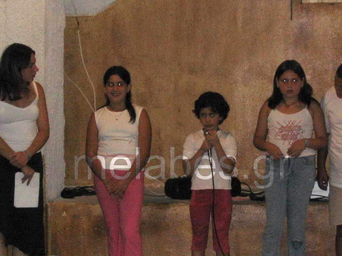 Οι παρακάτω φωτογραφίες είναι από τις αποχαιρετιστήριες τελικές εκδηλώσεις του Θερινού Σχολείου το 2003 που είχε διοργανώσει τότε ο Πολιτιστικός Σύλλογος Μελάμπων